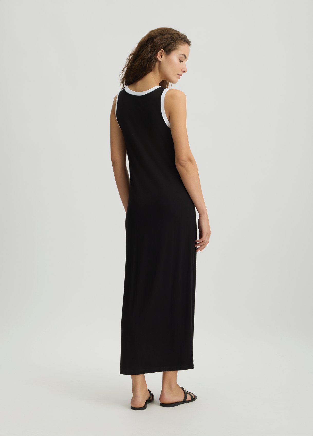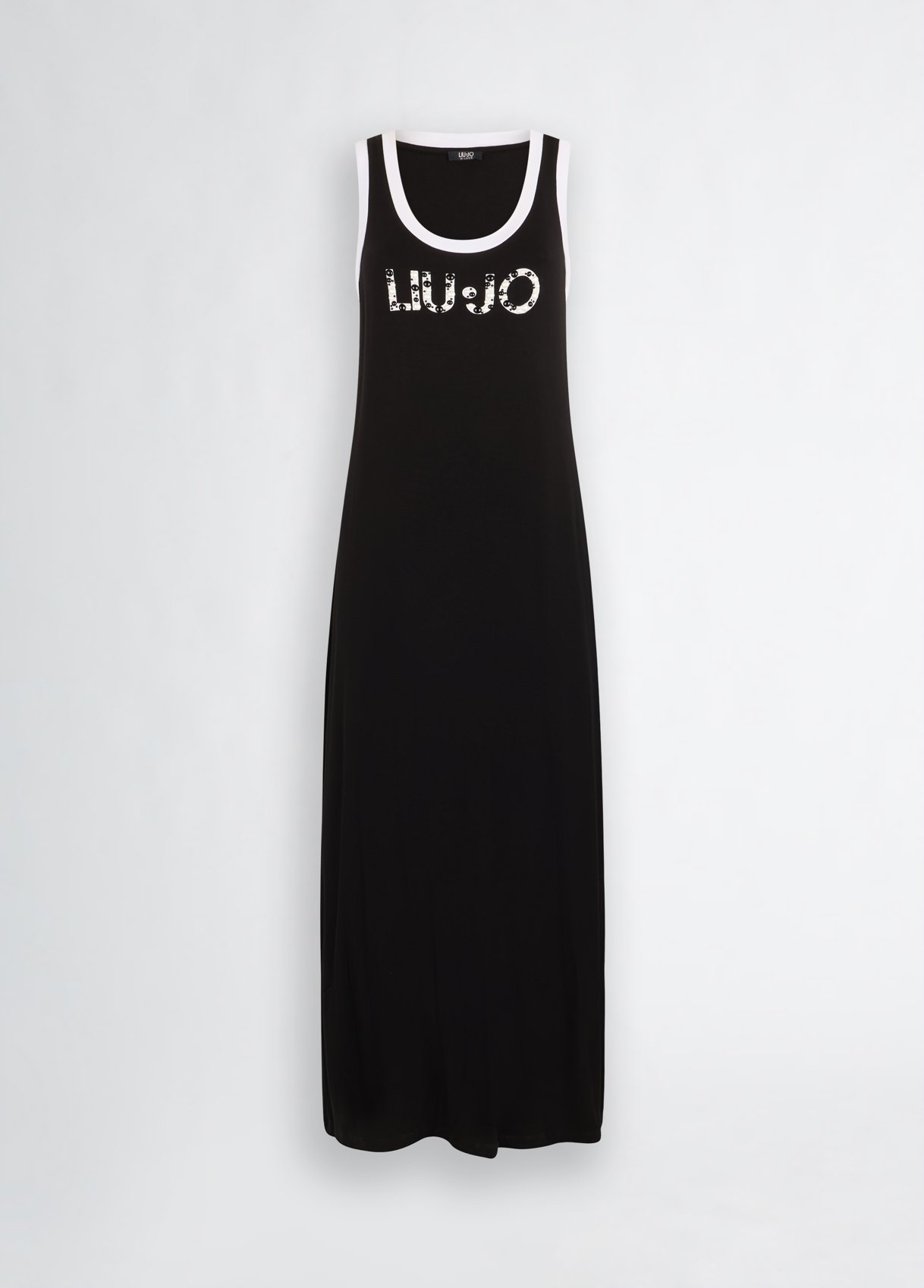 Descrizione: “Abito lungo in jersey di viscosa stretch Stampa logo con perle applicate Scollo rotondo Sorretto da spalline Spacco laterale Bordi a contrasto La modella è alta 178 cm e indossa la taglia S Composizione: Tessuto principale: 95% Viscosa, 5% Elastan Lavare delicatamente max 30u00b0C| Non trattare con cloro| Non usare asciugatrice| Stirare a temperatura massima 110 u00b0C| Non lavare a secco| Lavare separatamente| Lavare a rovescio| Stirare a rovescio| Non stirare le decorazioni “