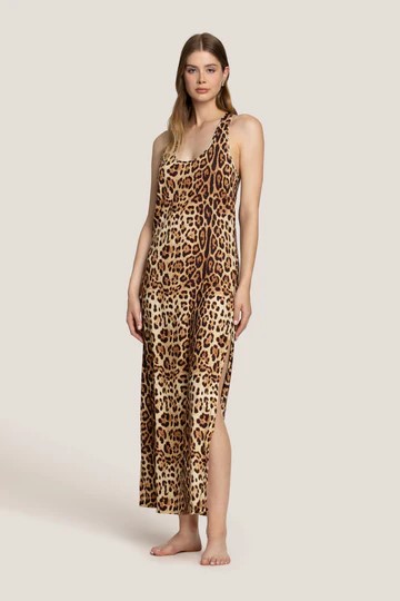 Descrizione: “Abito lungo canotta fasano feel con spacchi laterali.