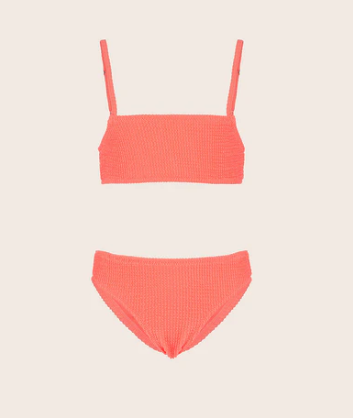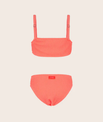 “Bikini bambina con top e slip fisso in lycra goffrata, capo dotato di spalline regolabili Composizione: 93% PL e 7% EA Lavaggio: si consiglia lavaggio a mano in acqua tiepida”