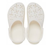 “Il Classic Clog, ma con un tocco cool e femminile! Questa nuova evoluzione del nostro sabot presenta dettagli di ispirazione floreale per un look gioioso e divertente, oltre a rivetti floreali coordinati che uniformano il design. Puoi sempre goderti la struttura leggera completamente sagomata e l’inconfondibile comfort dell’originale, senza dimenticare gli charm Jibbitzu2122 da aggiungere per il massimo della personalizzazione. è la scarpa comoda e irriverente che ami da sempre, ora con un divertente tocco floreale!