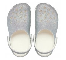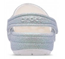 “I piccoli ameranno la nuova finitura glitterata iridescente e l’iconico comfort Crocs di questo Classic Glitter Clog pensato appositamente per loro. I glitter scintillanti cambiano colore a seconda dell’angolazione da cui li guardi, il che li rende ancora più divertenti, mentre grazie alla struttura in schiuma Crosliteu2122 sono leggeri e facili da indossare. Disponibili anche per adulti e bambini, così puoi abbinare i vostri look per un divertente momento in famiglia. Il comfort ha finalmente incontrato la personalità! Inizia a brillare!