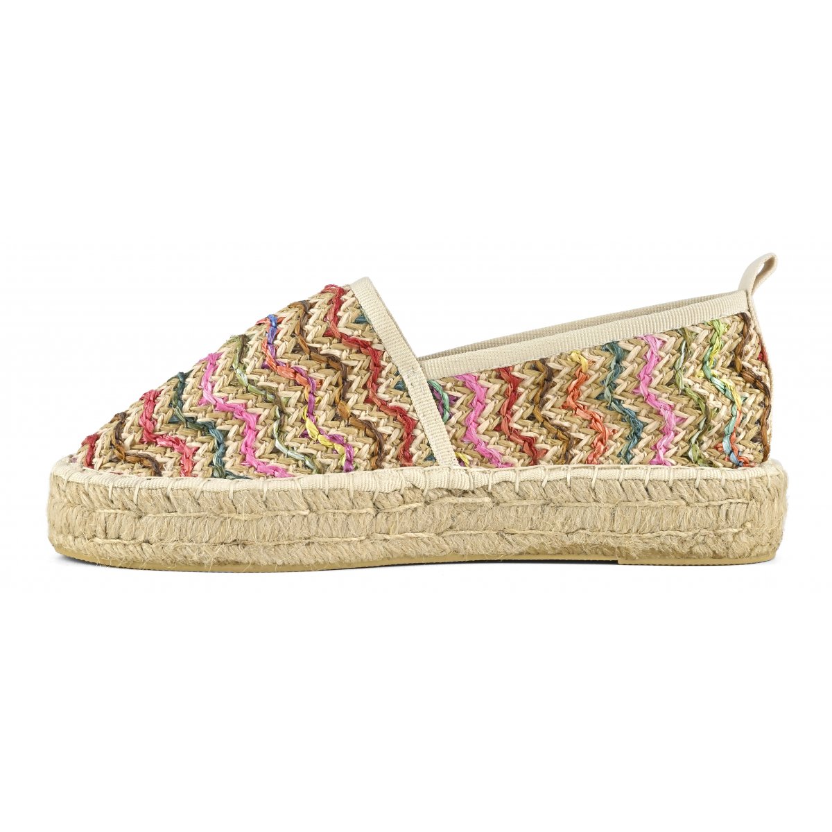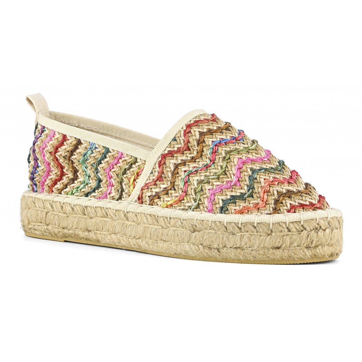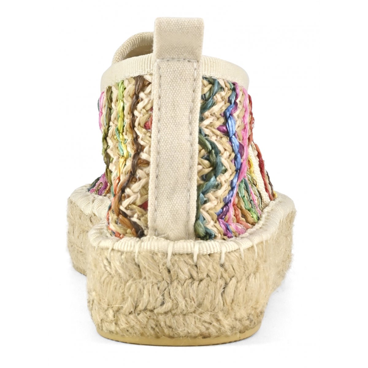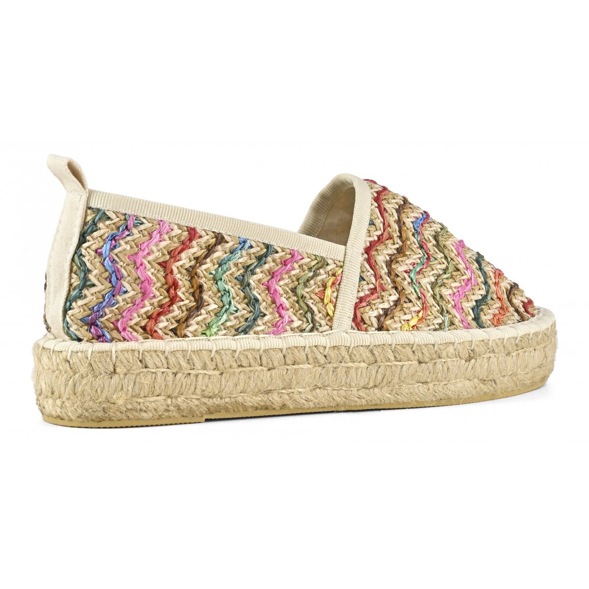 “Sempre molto alla moda, le espadrillas mixano comodità ed estetica. Queste sono di rafia multicolor, hanno un look estremamente versatile e possono completare facilmente lo stile che più vi appartiene. “