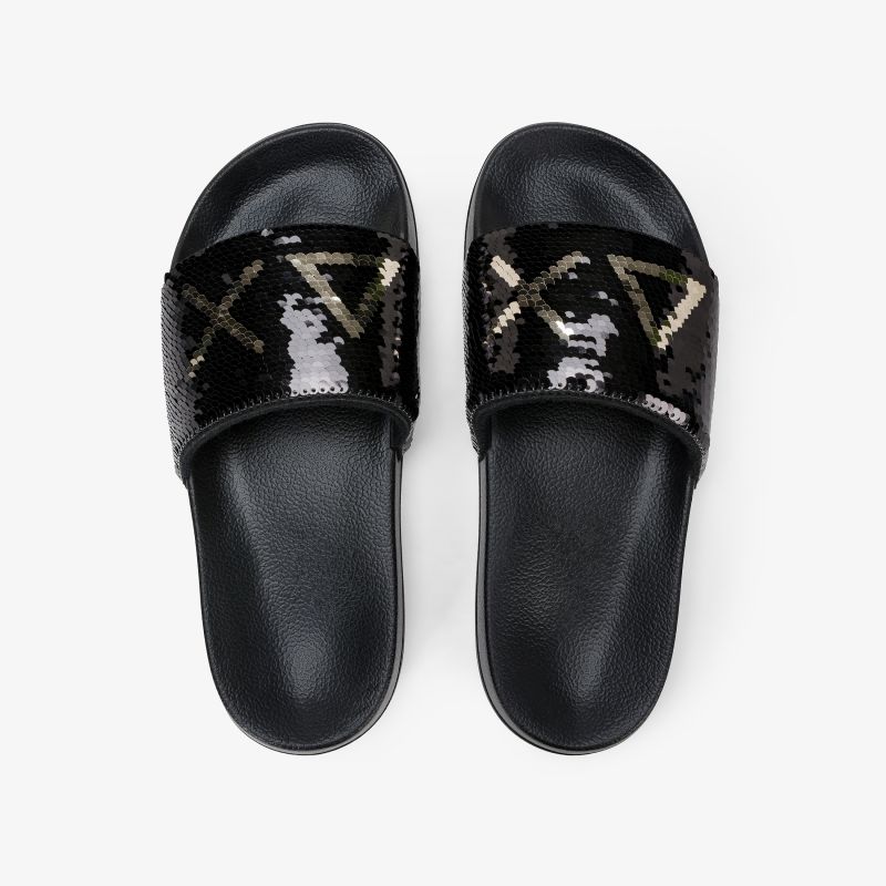 “L’essenziale estivo reinterpretato secondo i codici SUN68. Queste ciabatte si distinguono per la fascia con paillettes che crea un gioco di luci e colori a ogni passo, mentre il design ergonomico sostiene delicatamente il piede. Abbinale al bikini coordinato e a una pochette della collezione per un total look dall’attitudine audace, perfetto per il relax a bordo piscina o le giornate in riva al mare.