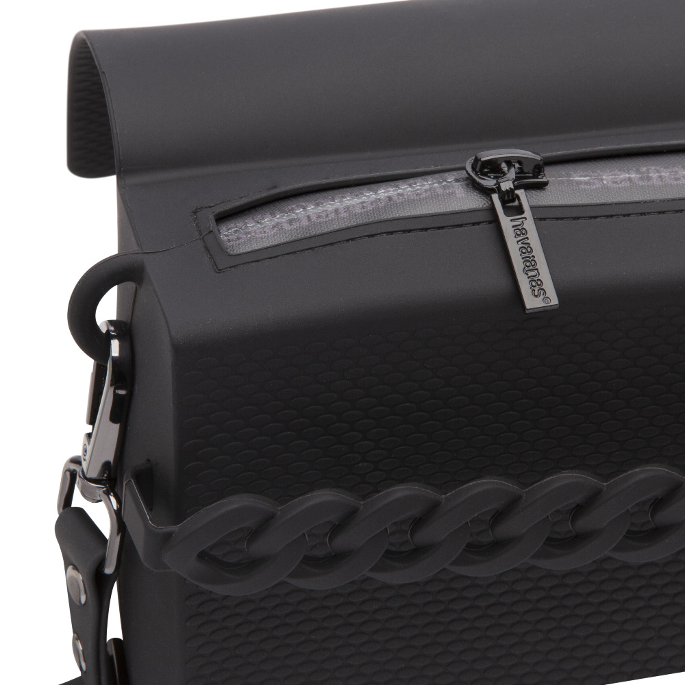 nRealizzata al 100% in silicone, questa borsa unica presenta l’iconica texture ispirata alle infradito Havaianas, che le conferisce un aspetto distintivo e moderno.
