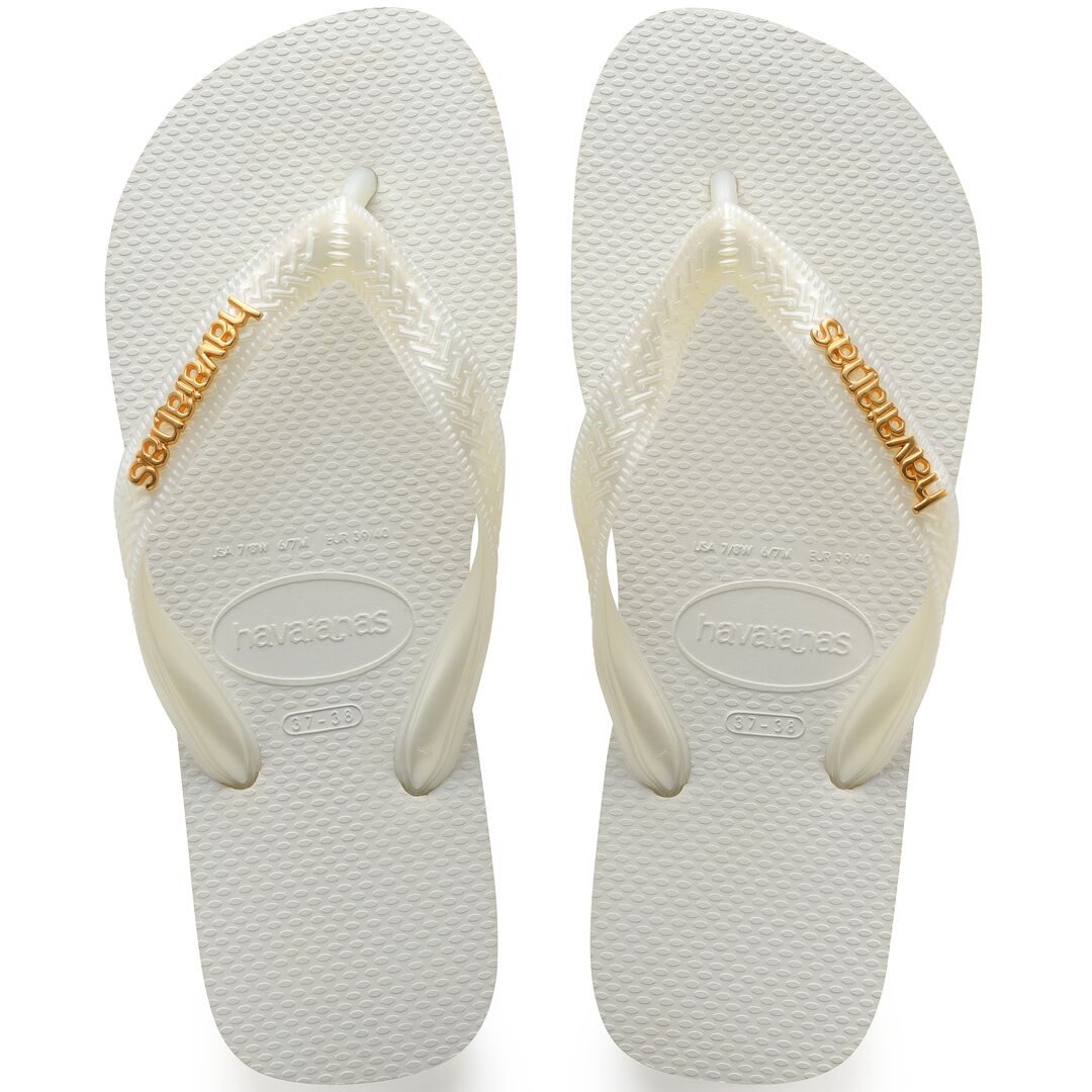 “Le Logo Metallic sono inconfondibili! Con il logo Havaianas in metallo dorato lucido sono state pensate proprio per rendere il look della tua prossima estate ancora più sofisticato! Originali e autentiche infradito brasiliane dal tocco femminile e dal design elegante. Prodotte in Brasile. Materiale della suola: Gomma. Vantaggi: Comodità, leggerezza, resistenza termica e all’acqua, suola antiscivolo. Caratteristiche: Fascette con motivo a greca, motivo a grana di riso sulla suola superiore e motivo a ‘mattone’ sulla parte inferiore. Logo metallico. “