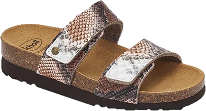 Lusaka è ciabatta con tecnologia Scholl Bioprint dotata del caratteristico plantare in sughero natuale e gomma ergonomicamente disegnato per mantenere il piede nella giusta posizione. Un modello pratico e casual, la chiusura con velcro permette una perfetta adattabilità al piede e la stampa pitonata la rende una scarpa molto grintosa adattabile ad ogni abbinamento.
