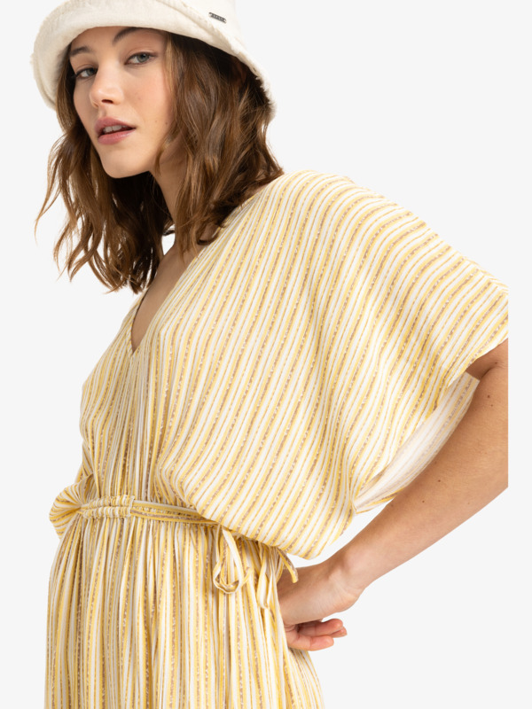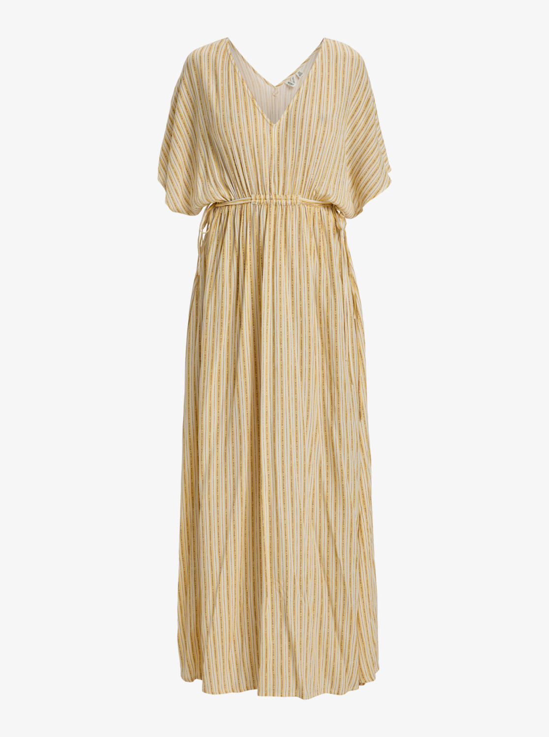Descrizione: “Maxi vestito in crinkle di viscosa, scollo a V e maniche corte in stile kimono.