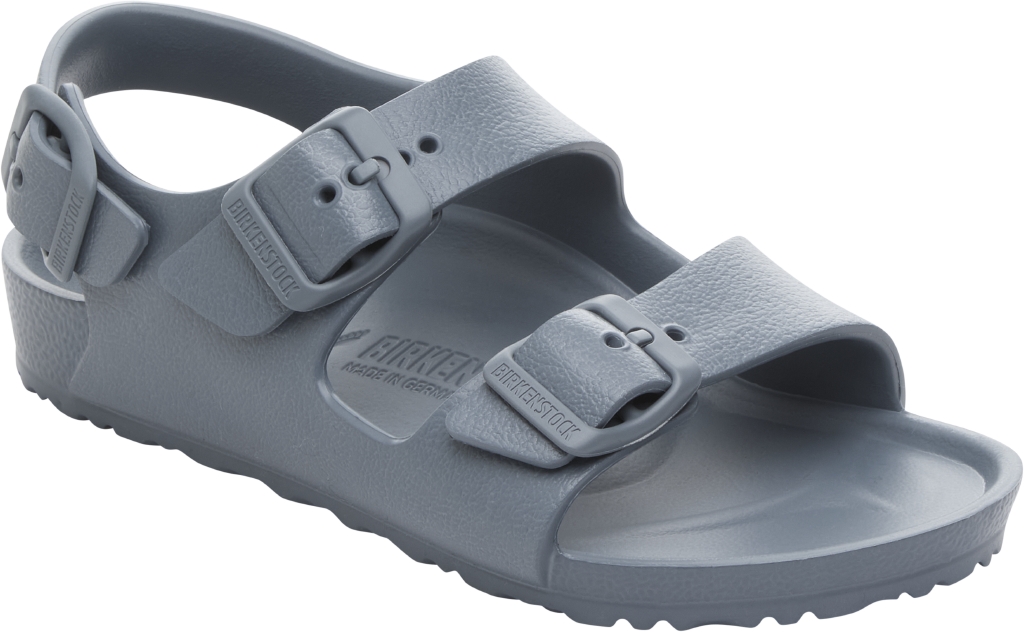 “Ottimo appoggio, massima stabilità e vestibilità perfetta! Tutto questo è offerto dal modello BIRKESTOCK Milano grazie al suo design compatto con cinturino per il tallone. Questo sandalo che, una volta indossato, ricorda la leggerezza del plantare originale in sughero, è in materiale EVA particolarmente leggero e flessibile. Il pregiato materiale sintetico inodore e resistente ai danni è ammortizzante, resistente all’acqua e dermoaffine. Il sandalo è pertanto ideale per la spiaggia, il giardino o le aree wellness e spa.