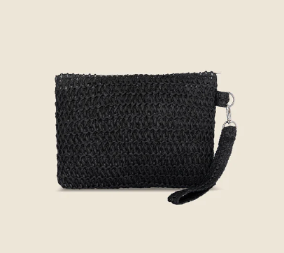 “Pochette in carta paglia con logo dotata di chiusura zip