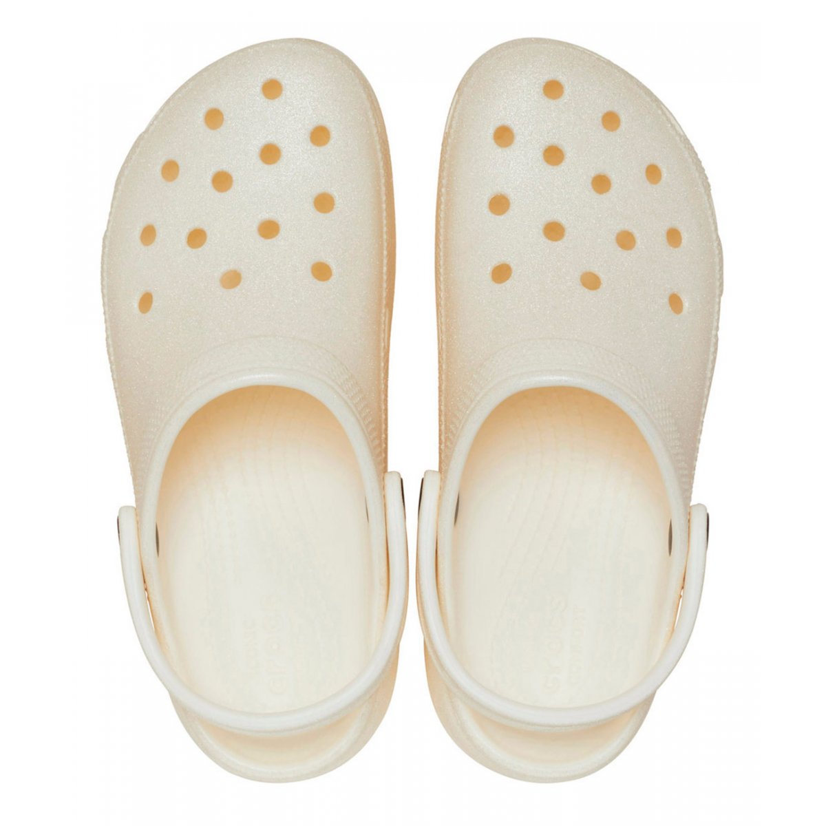 “Pensando alle donne, abbiamo creato una versione super trendy del nostro leggendario Classic. Vi presentiamo la Classic Platform, con suola esterna maggiorata e sagomata, a supporto dell’amatissima tomaia dal profilo affusolato e raffinato. Ma non è tutto. Questa versione presenta un fantastico trattamento con glitter all over, quindi, se vuoi dare una spinta in più di stile al tuo look, abbina la Classic Platform Glitter Clog.