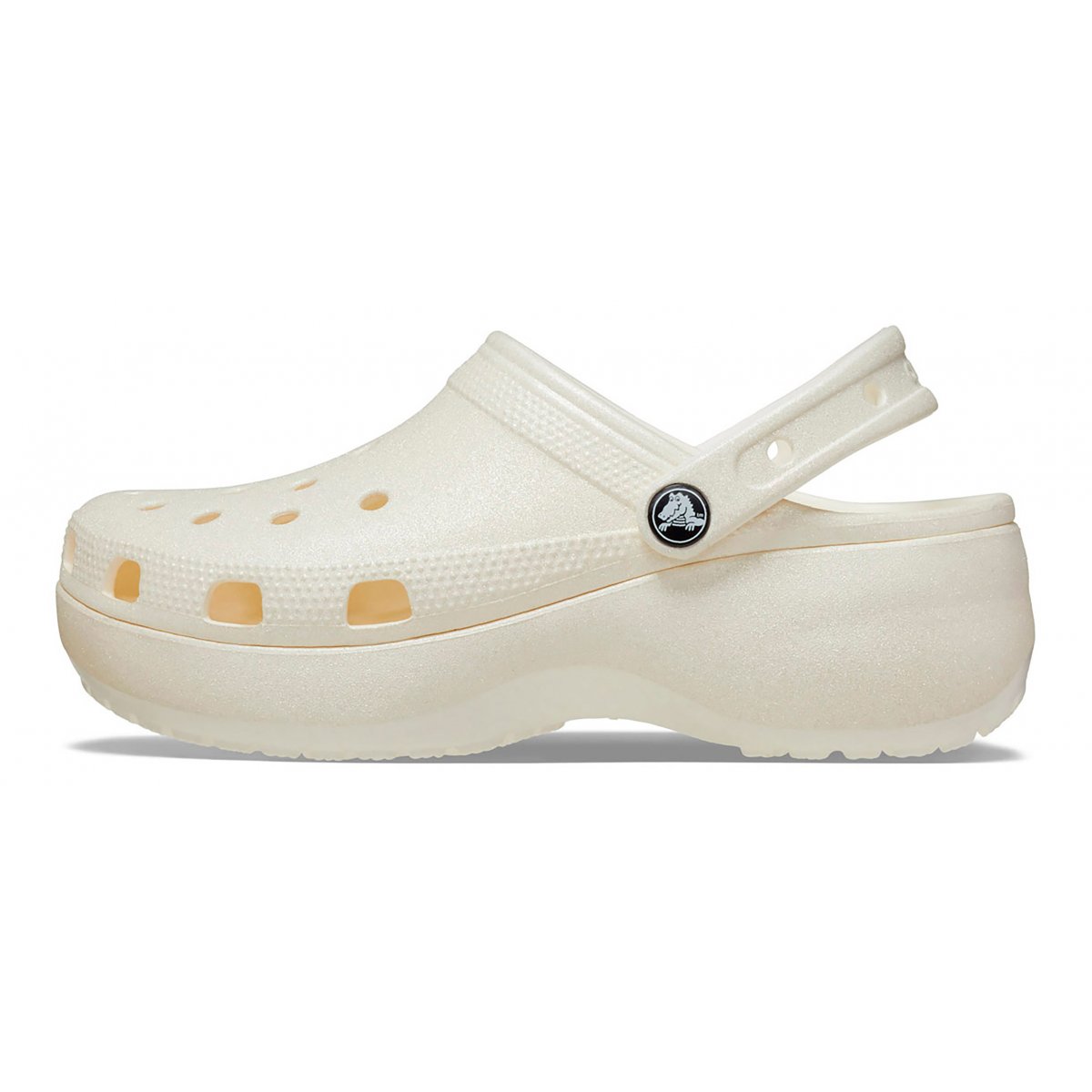 Descrizione: “Pensando alle donne, abbiamo creato una versione super trendy del nostro leggendario Classic. Vi presentiamo la Classic Platform, con suola esterna maggiorata e sagomata, a supporto dell’amatissima tomaia dal profilo affusolato e raffinato. Ma non è tutto. Questa versione presenta un fantastico trattamento con glitter all over, quindi, se vuoi dare una spinta in più di stile al tuo look, abbina la Classic Platform Glitter Clog.