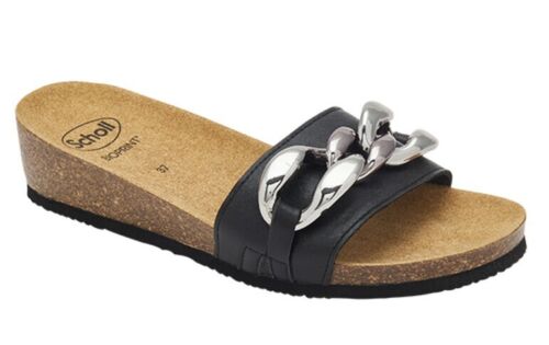 Il sandalo Ravello è l’alternativa più accattivante dell’estate grazie al dettaglio più glamour della stagione: la catena sulla tomaia. La sua comoda zeppa di 4cm aiuta a slanciare la figura senza rinunciare al comfort grazie alla soletta SCHOLL BIOPRINT.