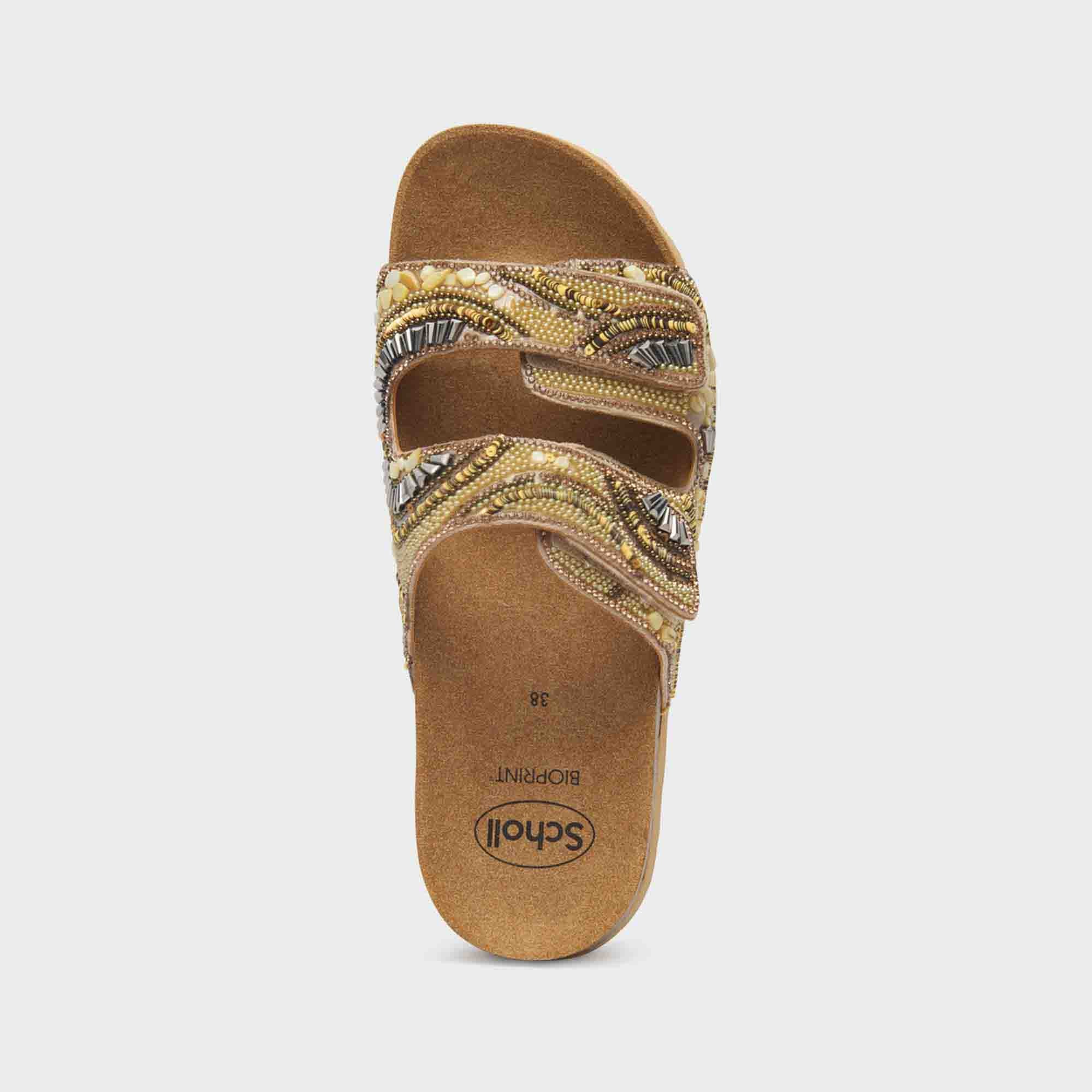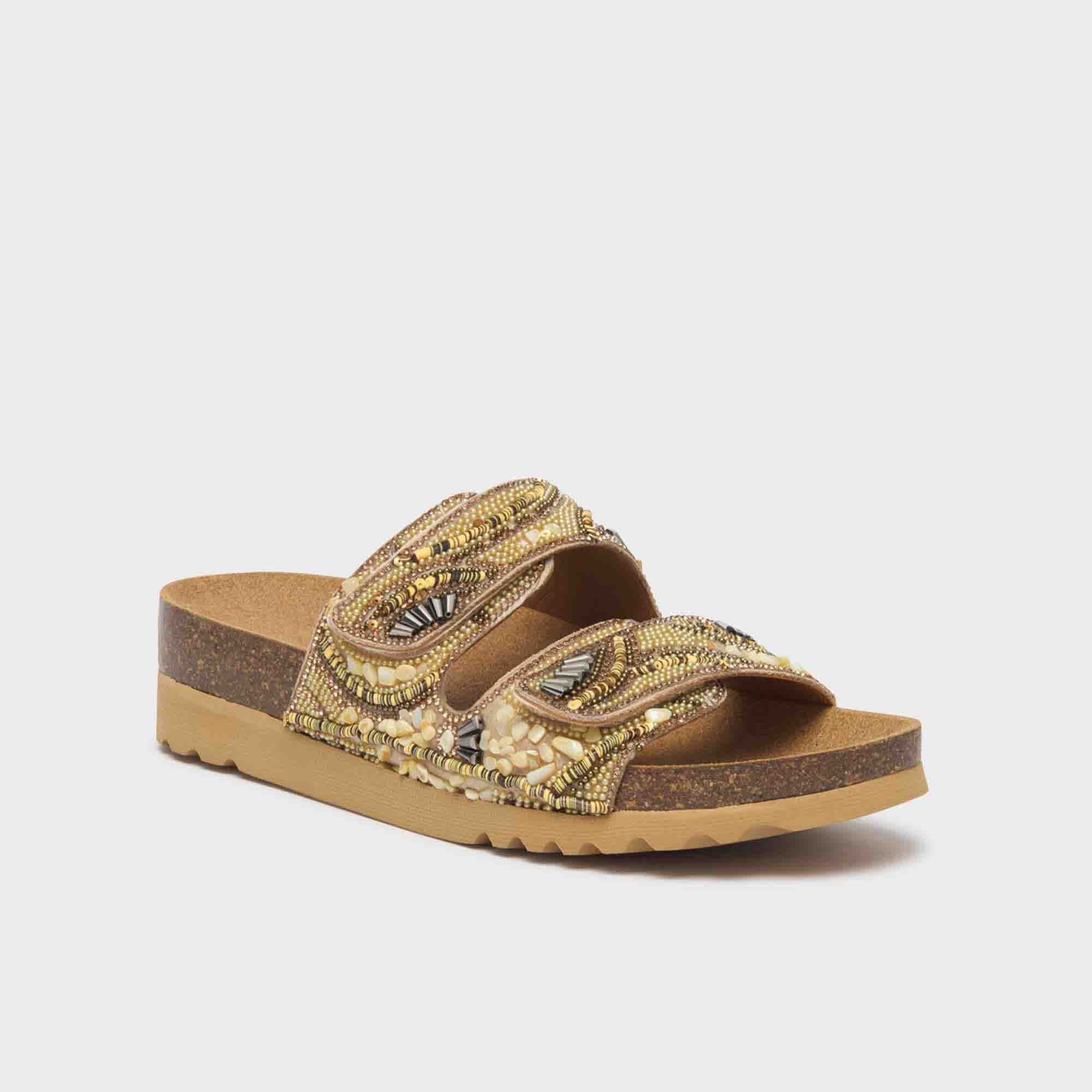 “Sandalo donna dal design estroso e accattivante, perfetto per chi cerca un mix di stile e comfort. Dotato di tecnologia Bioprintu00ae, migliora la postura sostenendo l’arco plantare, garantendo una camminata confortevole e naturale. La tomaia, realizzata in microfibra e arricchita con perline, presenta due cinturini regolabili che offrono una calzata personalizzata e sicura. Ideale per completare look estivi con un tocco di originalità e glamour. “