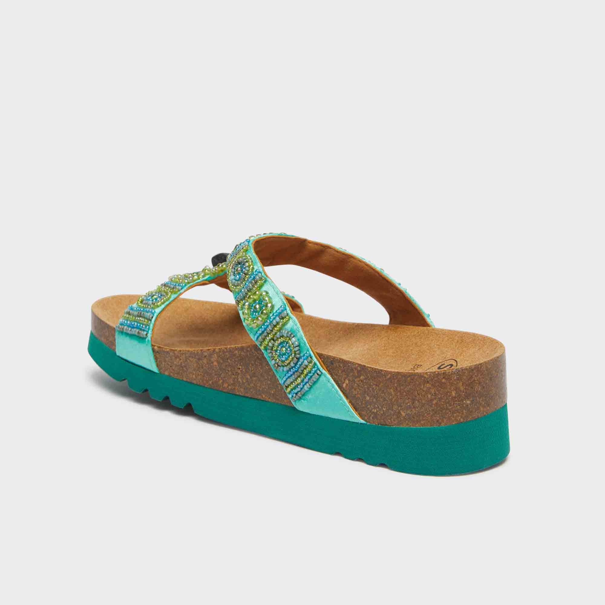 “New Bogotà è il vero sandalo cult di Scholl che da decenni conquista Scholl Lovers con il gioco di colori delle sue perle intrecciate a mano che animano le giornate estive. Un modello casual e femminile, con tomaia in tessuto a doppia fascia che abbraccia delicatamente il piede. Inoltre, la calzatura è flessibile, leggera e dotata di tecnologia Scholl Bioprintu00ae con il caratteristico plantare in sughero naturale e gomma studiato per aiutare a mantenere il piede nella giusta posizione . Fatto in Spagna. “