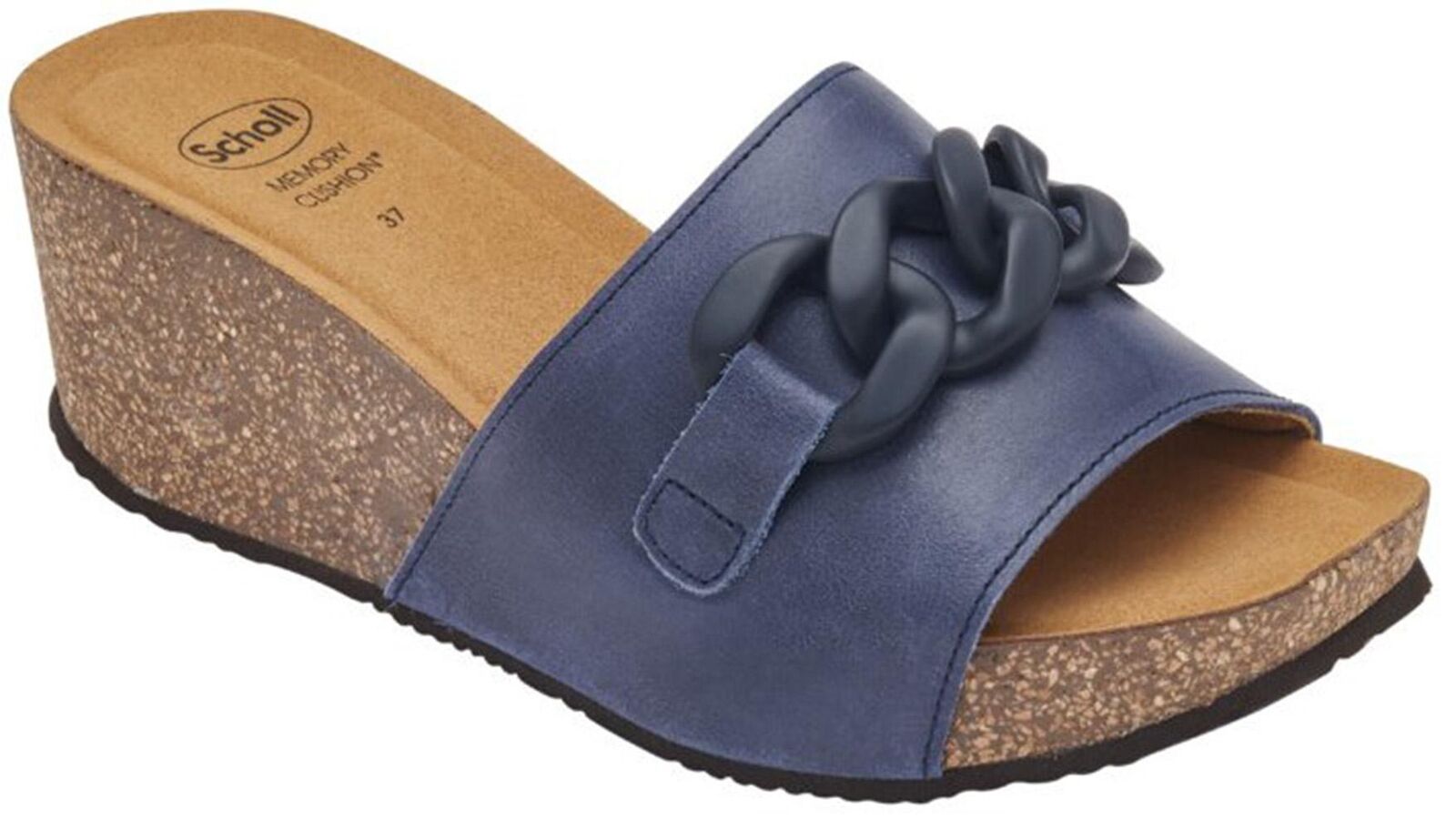 “La sua maxi catena effetto acciaio brunito aggiunge un tocco abbagliante alla linea Ravello, donando movimento e stile ad ogni passo per esaltare l’abbigliamento estivo sia in termini di stile che di comfort. I sandali Ravello possono essere indossati tutto il giorno grazie al tipico comfort Scholl garantito dalla comoda fascia che abbraccia morbidamente il piede e dal plantare Scholl Bioprintu00ae. Altezza tacco 60mm Tomaia in pelle