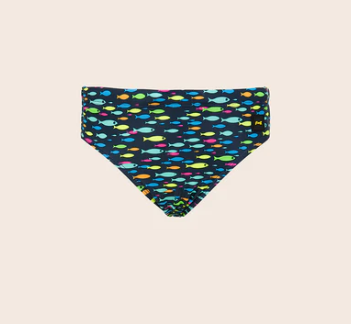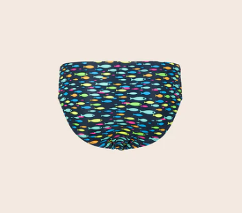 Descrizione: “Slip stampato fantasia dotato di laccetto regolabile Composizione: 85% PL e 15% EA Lavaggio: si consiglia lavaggio a mano in acqua tiepida”