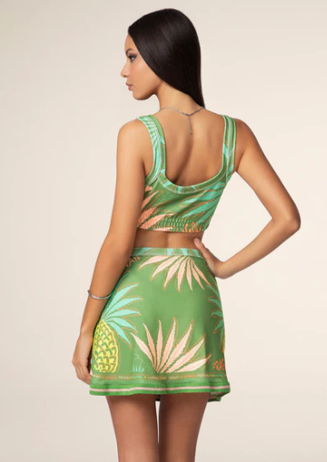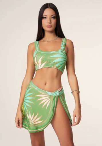 “Top fantasia in spugna Taglia: la modella è alta 172cm e indossa una taglia S Composizione: 96% PL e 4% EA Lavaggio: si consiglia lavaggio a mano in acqua tiepida”