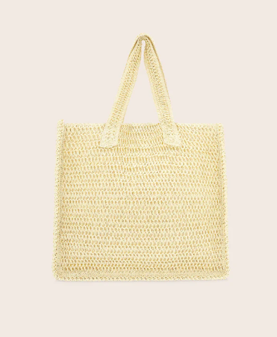 “Borsa mare in carta paglia dotata di chiusura interna con bottone Dimensioni: 38x38x15cm Composizione: 100% PI Lavaggio: si consiglia lavaggio a mano in acqua tiepida”