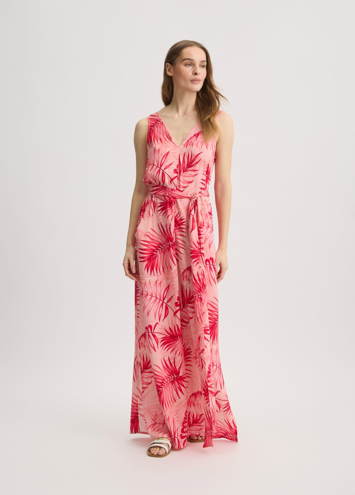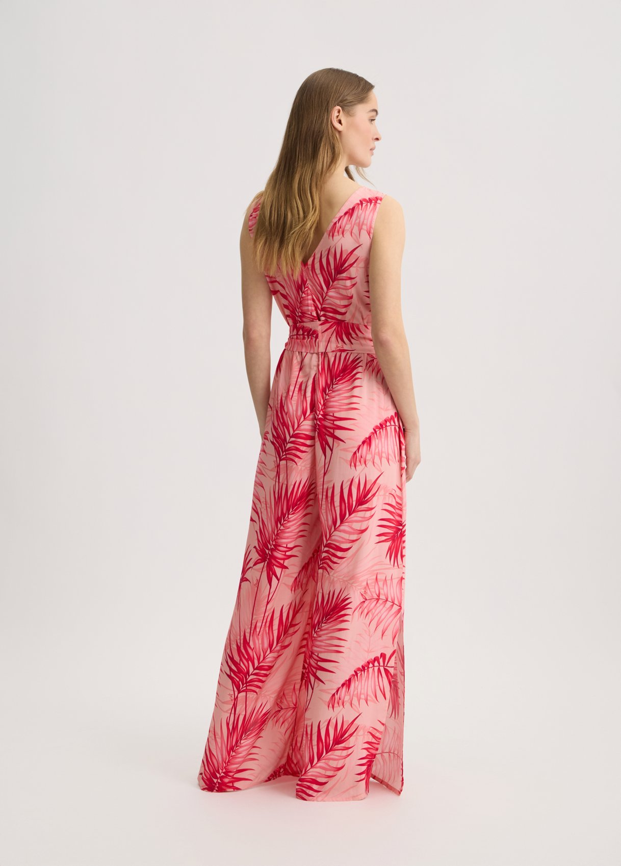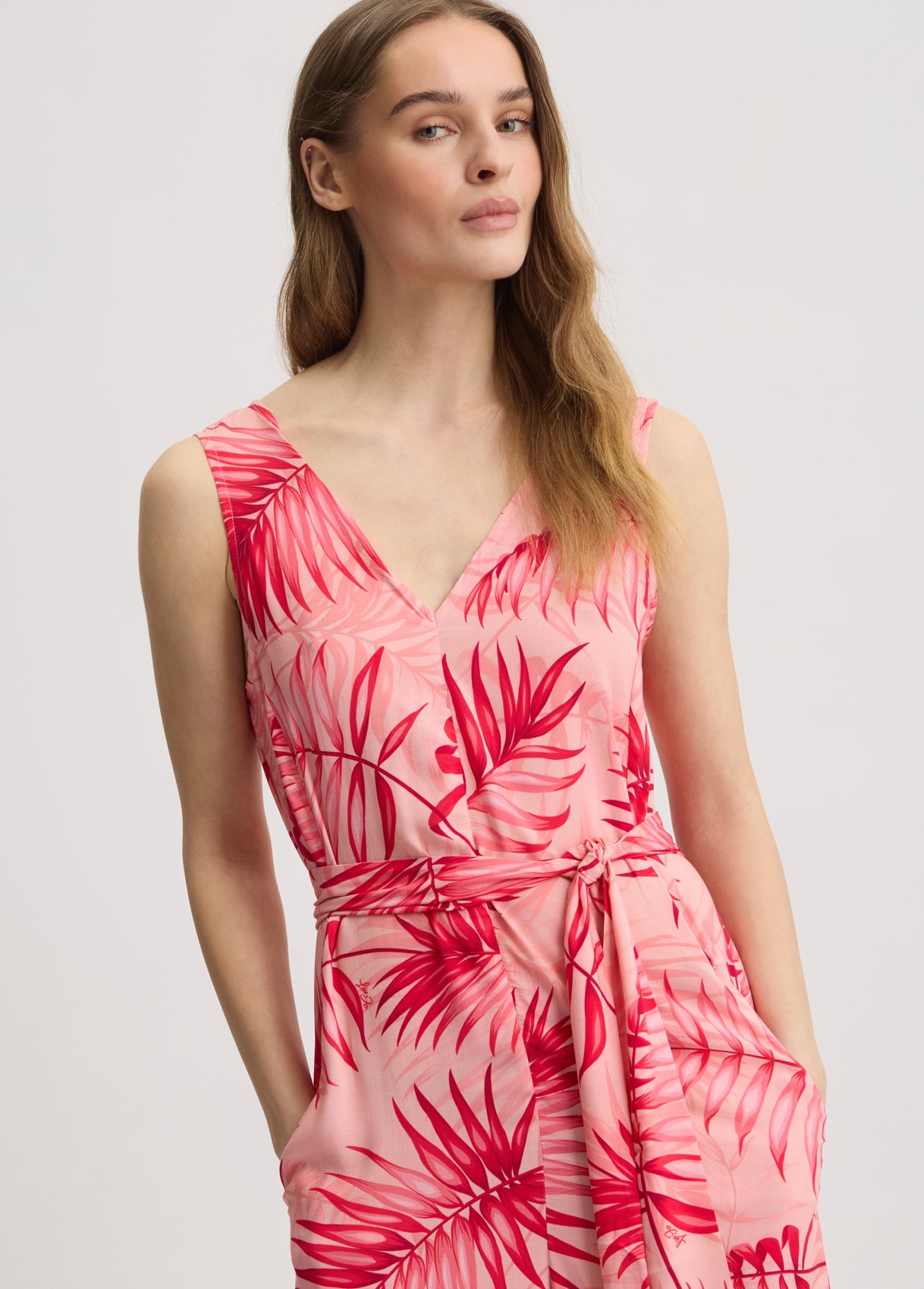 “Tuta in viscosa Stampa tropicale all over Scollo a V Sorretto da spalline larghe Tasche sui fianchi Cintura sur ton in abbinamento rnComposizione: Tessuto principale: 100% Viscosa rnLavare delicatamente max 30u00b0C| Non trattare con cloro| Non usare asciugatrice| Stirare a temperatura massima 110 u00b0C| Non lavare a secco| Lavare con colori similari| Lavare a rovescio| Stirare a rovescio “